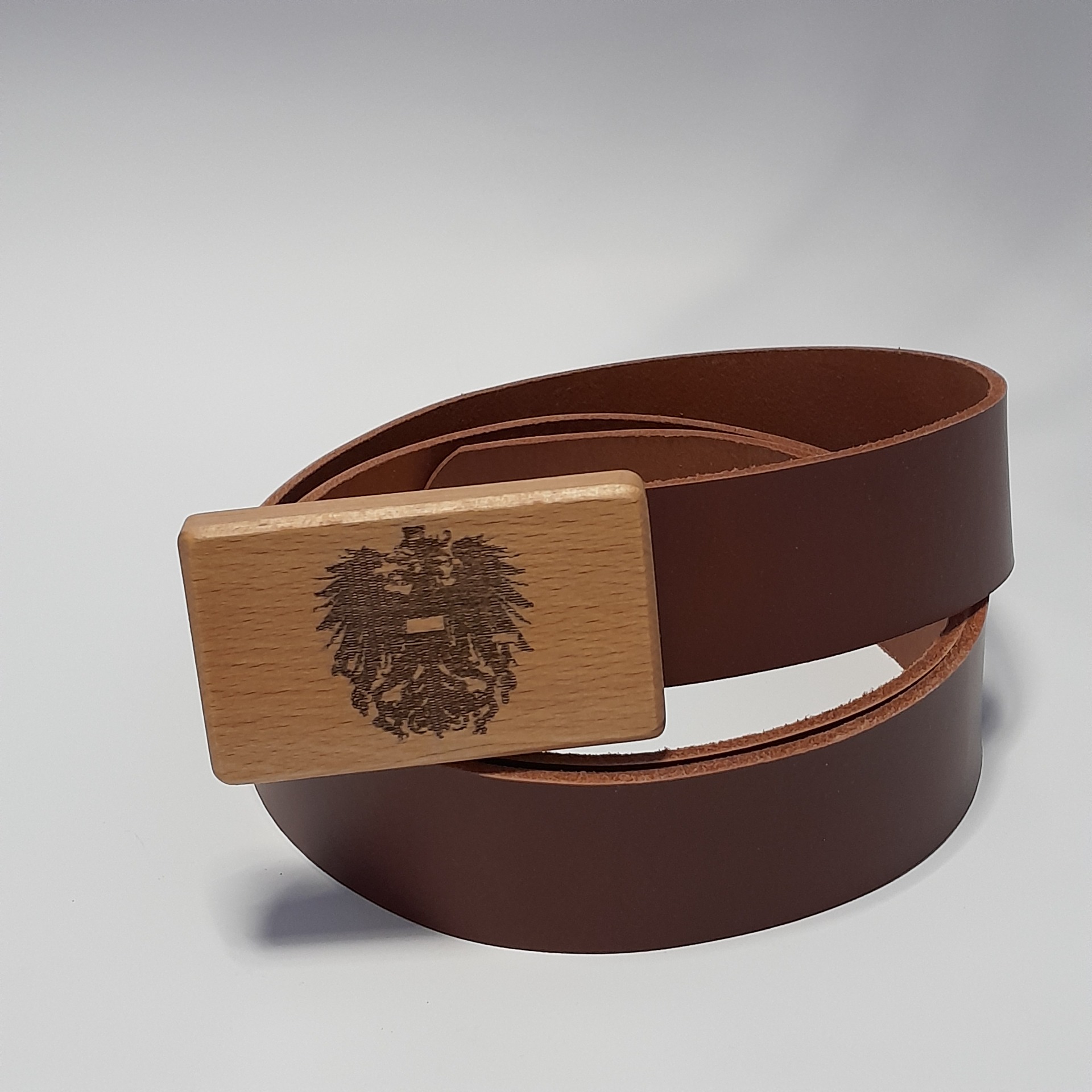 "Kostenlose Anpassung deines Ledergürtels mit Holzschnalle"