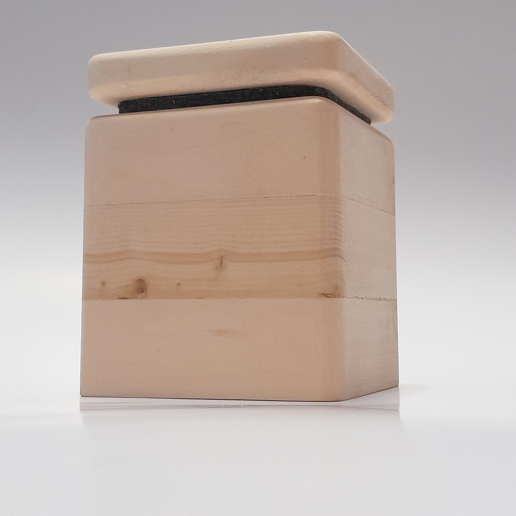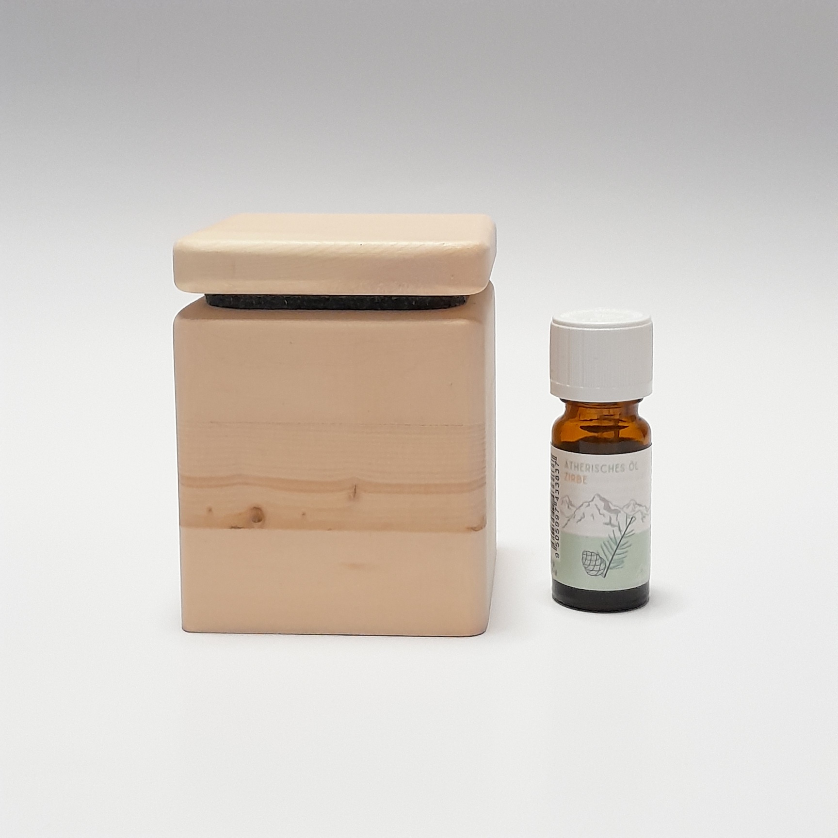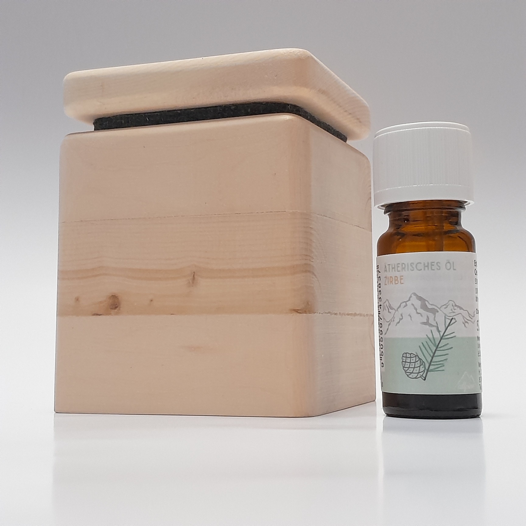 - dreiteiliger Zirbenwürfel mit integriertem Filz als Trägerstoff für ZirbenÖl
